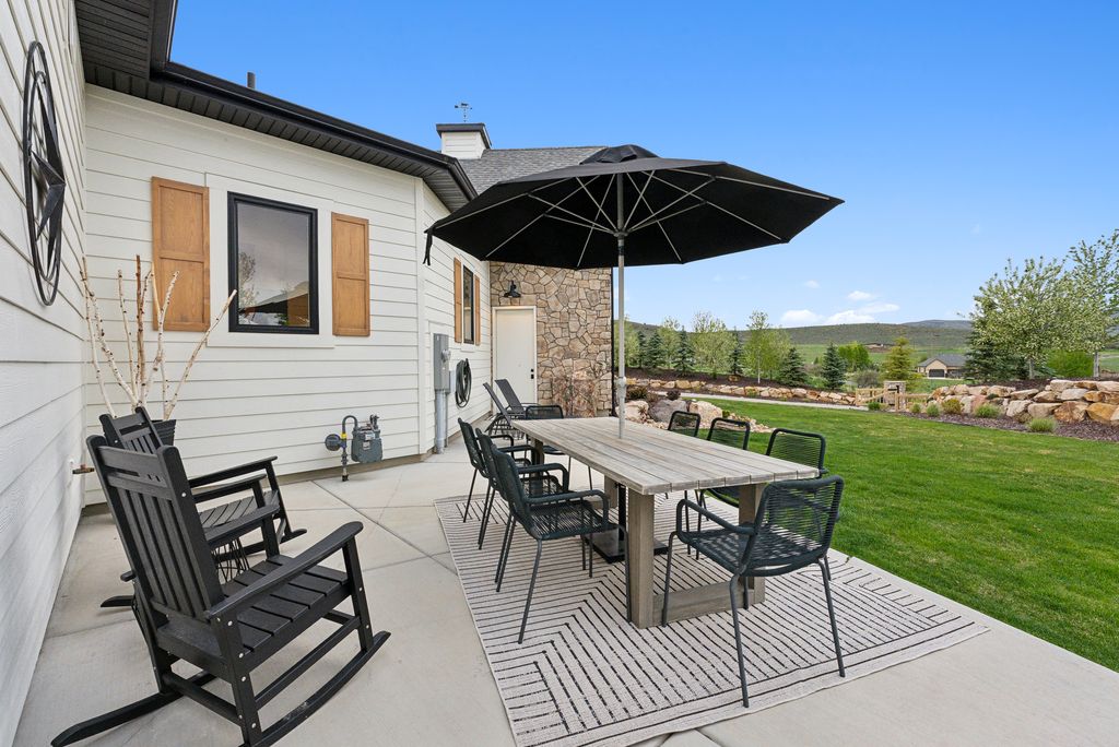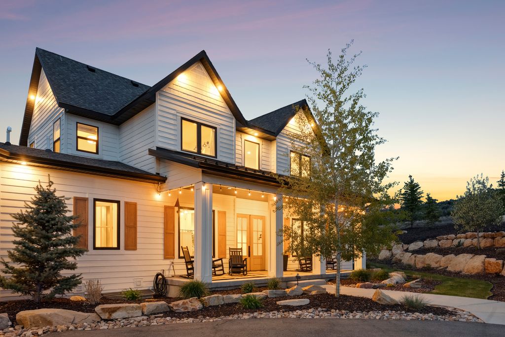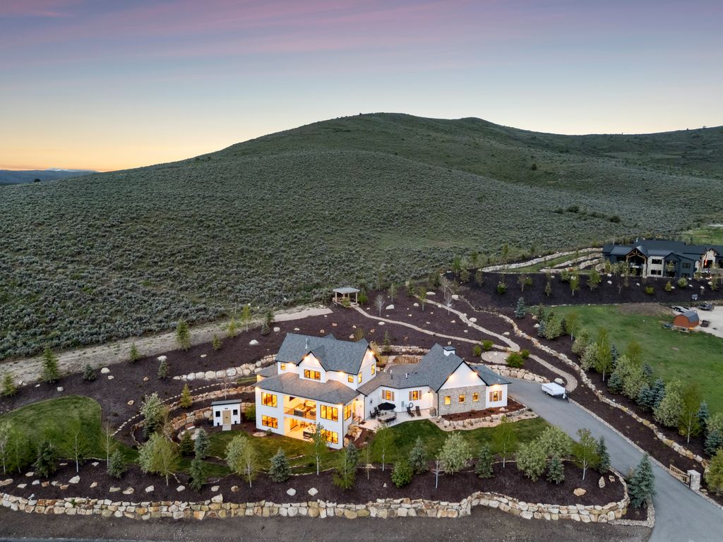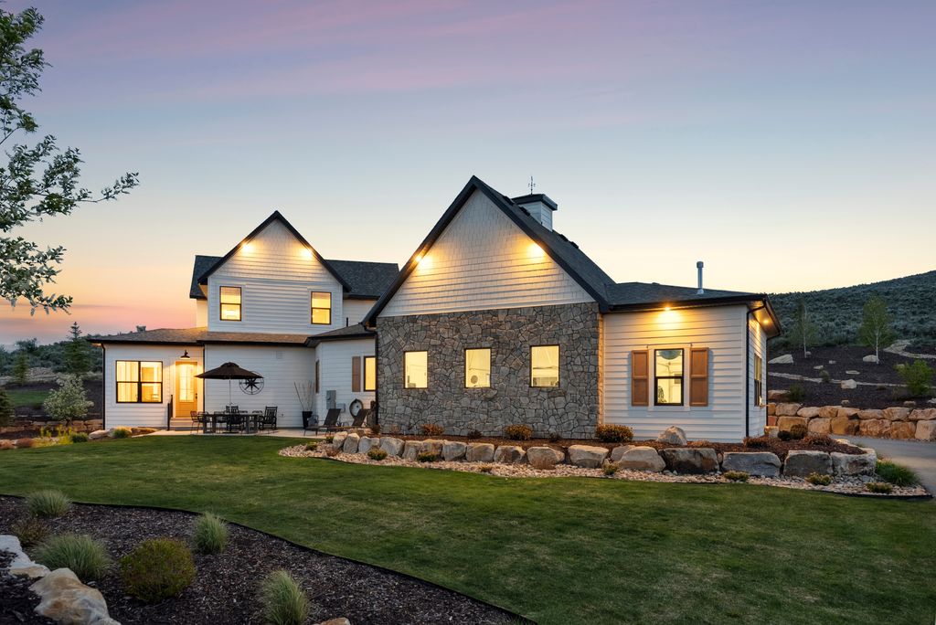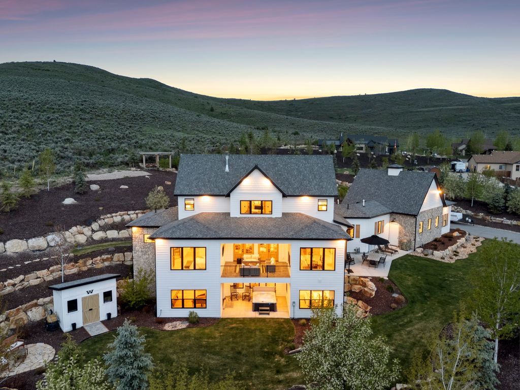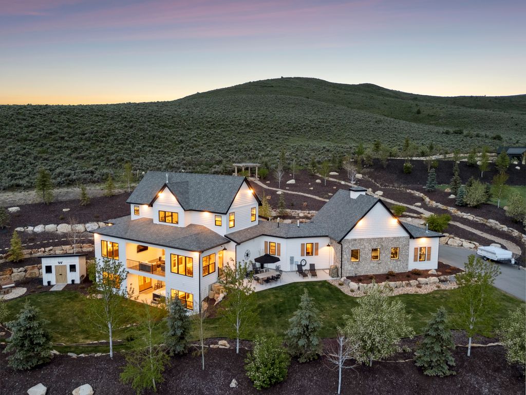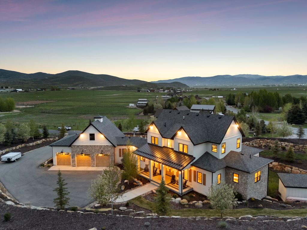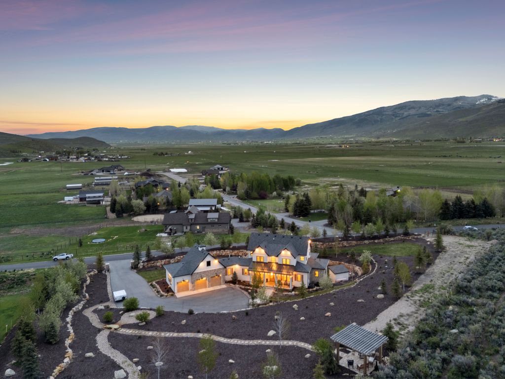 This perfectly designed home has the most amazing finishes throughout, offers main floor living and has stellar views to the Kamas Valley and Uinta Mountains. It’s a modern farmhouse with warm color palettes of wood, brick and rock, creating the inviting home that bridges contemporary with a farm house vibe. The main floor offers an inviting great room with a chef’s kitchen all opening to an amazing patio area perfect for outdoor movie watching and morning coffee. The primary bedroom is also on the main level offering beautiful valley views, a stunning bathroom with a soaker tub and oversized shower plus a large walk-in closet. Upstairs you’ll find two private guest rooms and an office offering some of the best views in the home. The downstairs walk-out family room is perfect for an additional living space that features a wet bar, room for a pool table, versatile theatre room, a brick wine room and plenty of space to entertain or snuggle in at home. You can walk out to the private back yard that features a hot tub area and designer shed. There’s also two additional large bedrooms on this level. The home boasts multiple porches, decks and private patios perfect for enjoying the summer evenings. The home has unbelievable landscaping design emphasizing the valley views from almost every window. You’ll enjoy being tucked in the Kamas Valley, and yet just 15 minutes to downtown Park City and the slopes.