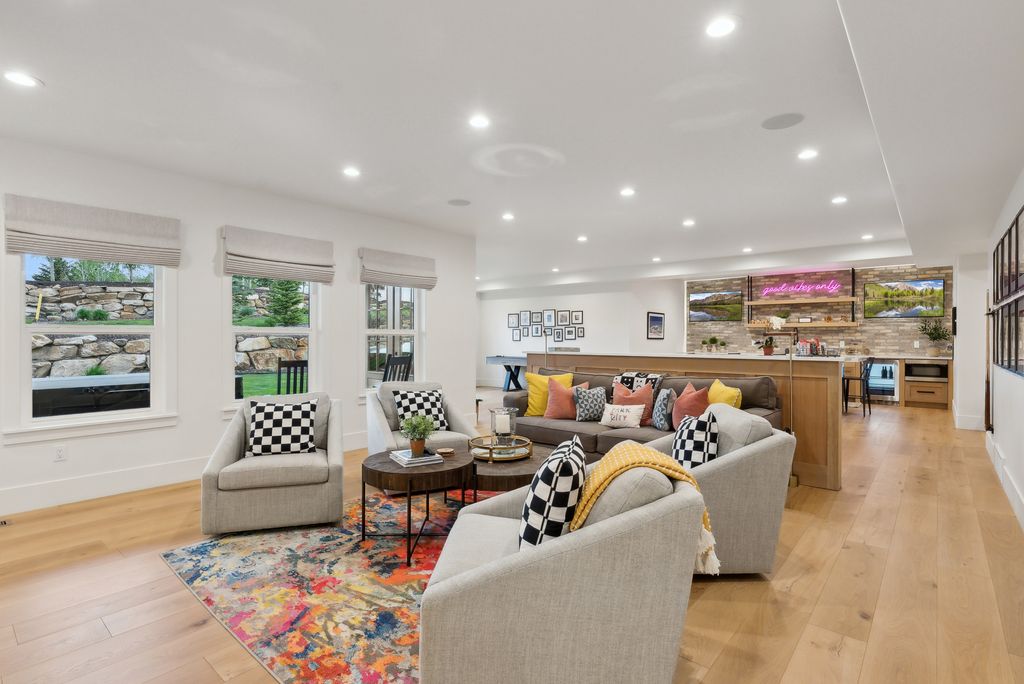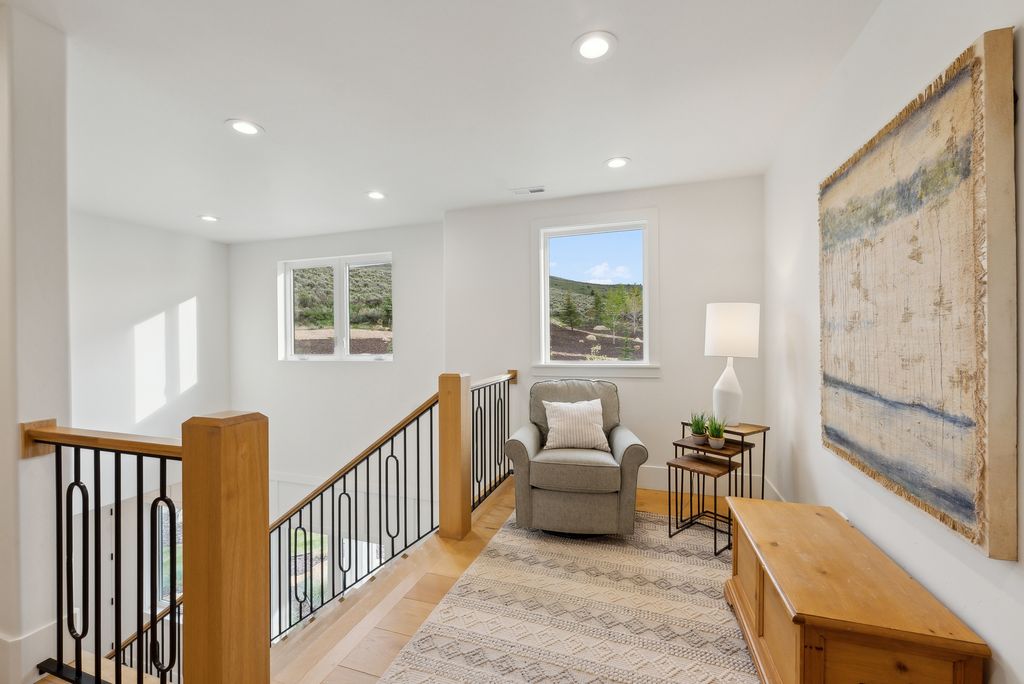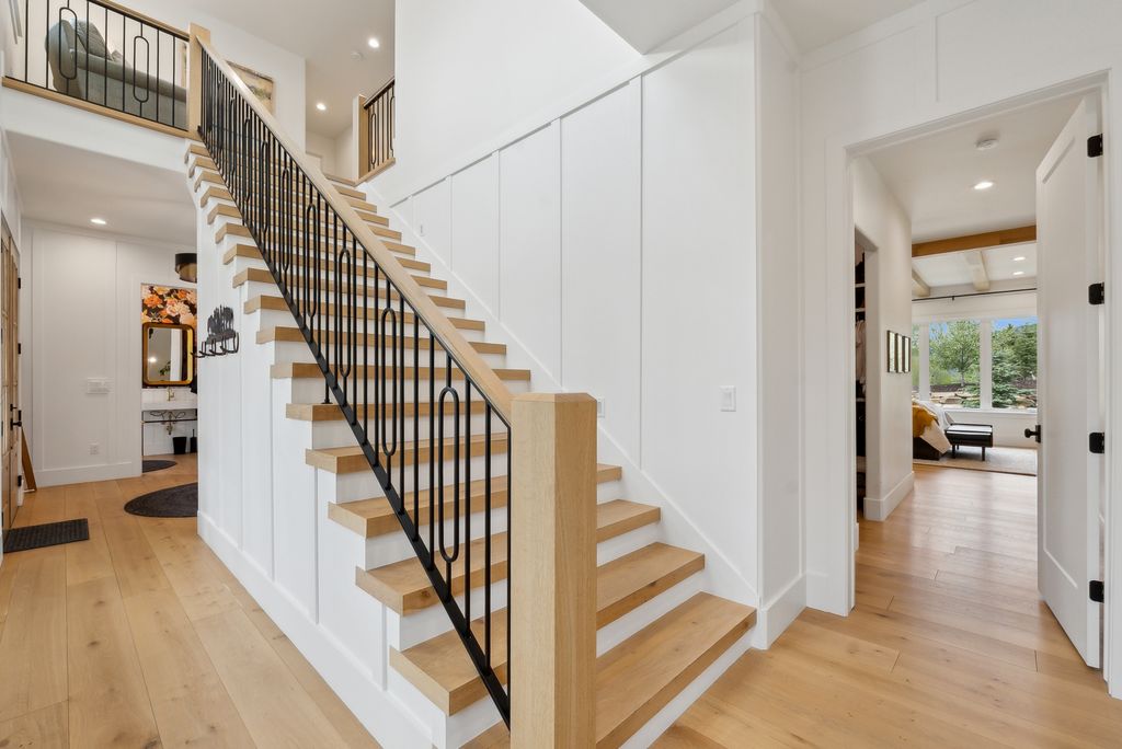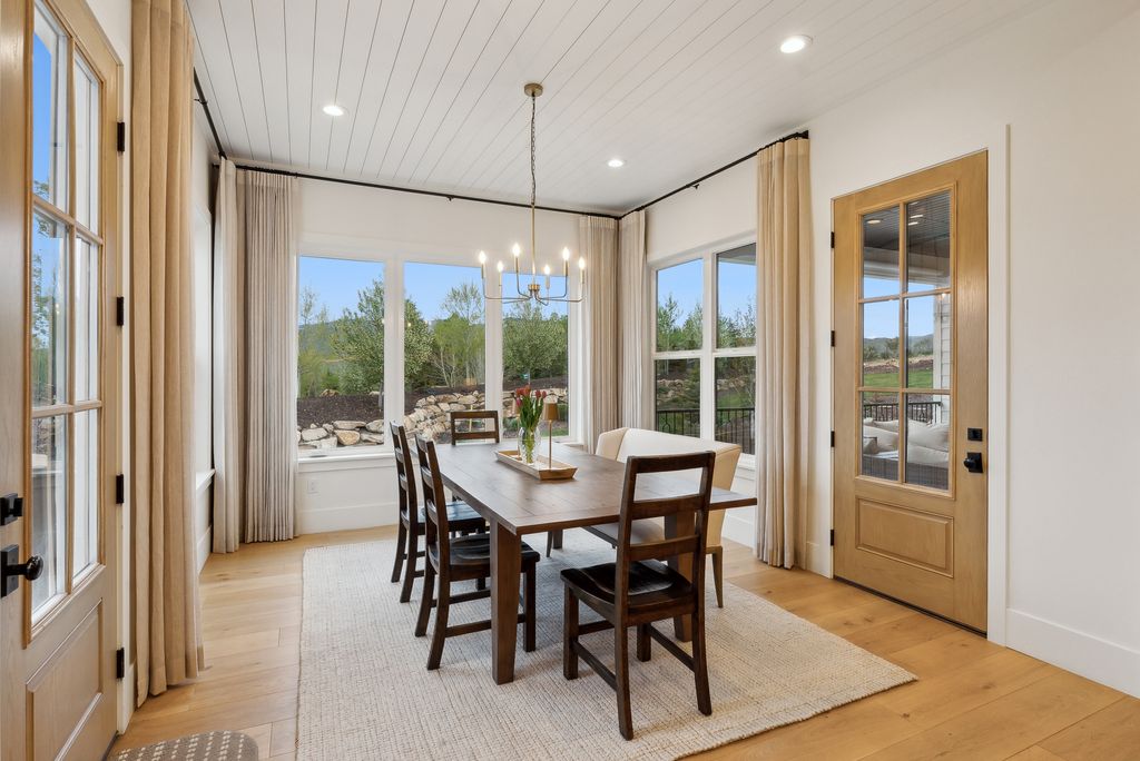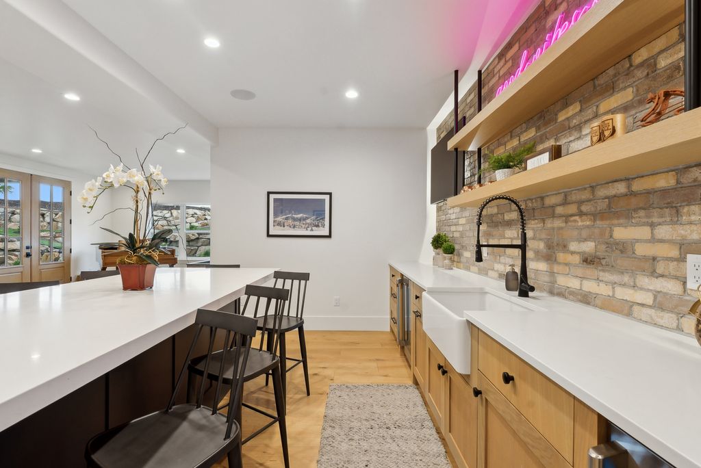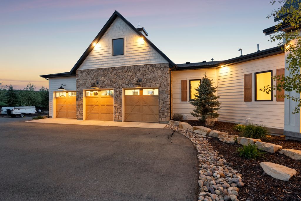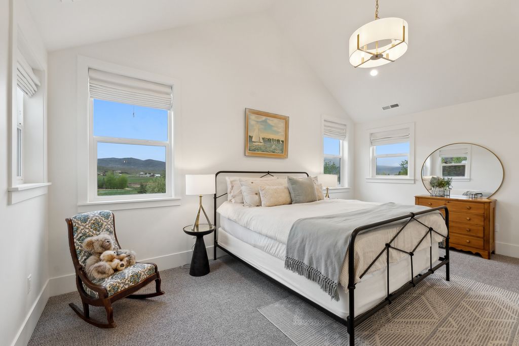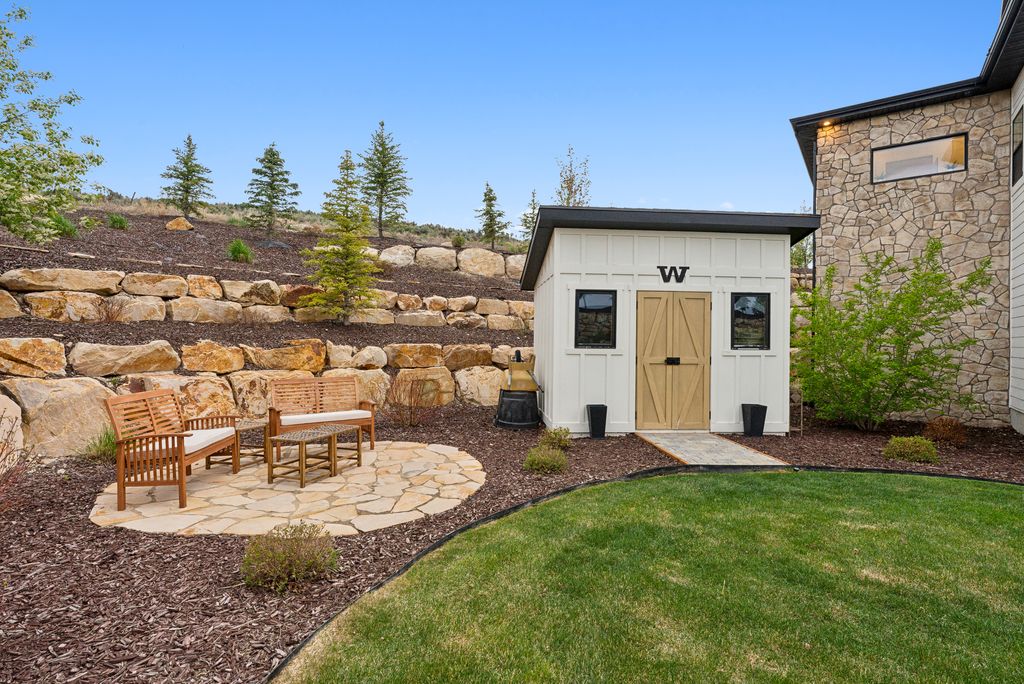 This perfectly designed home has the most amazing finishes throughout, offers main floor living and has stellar views to the Kamas Valley and Uinta Mountains. It’s a modern farmhouse with warm color palettes of wood, brick and rock, creating the inviting home that bridges contemporary with a farm house vibe. The main floor offers an inviting great room with a chef’s kitchen all opening to an amazing patio area perfect for outdoor movie watching and morning coffee. The primary bedroom is also on the main level offering beautiful valley views, a stunning bathroom with a soaker tub and oversized shower plus a large walk-in closet. Upstairs you’ll find two private guest rooms and an office offering some of the best views in the home. The downstairs walk-out family room is perfect for an additional living space that features a wet bar, room for a pool table, versatile theatre room, a brick wine room and plenty of space to entertain or snuggle in at home. You can walk out to the private back yard that features a hot tub area and designer shed. There’s also two additional large bedrooms on this level. The home boasts multiple porches, decks and private patios perfect for enjoying the summer evenings. The home has unbelievable landscaping design emphasizing the valley views from almost every window. You’ll enjoy being tucked in the Kamas Valley, and yet just 15 minutes to downtown Park City and the slopes.