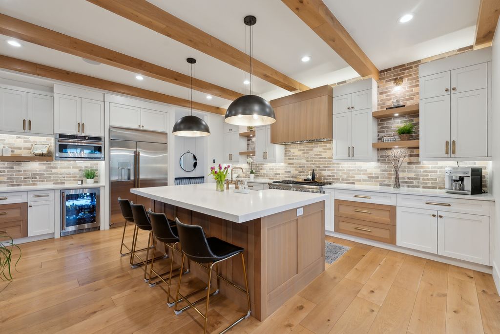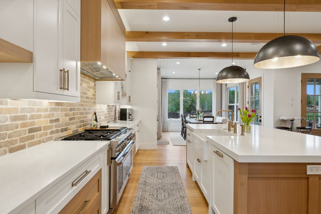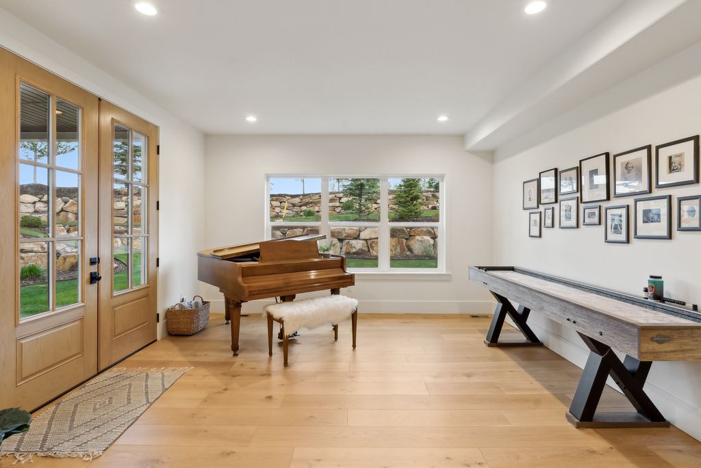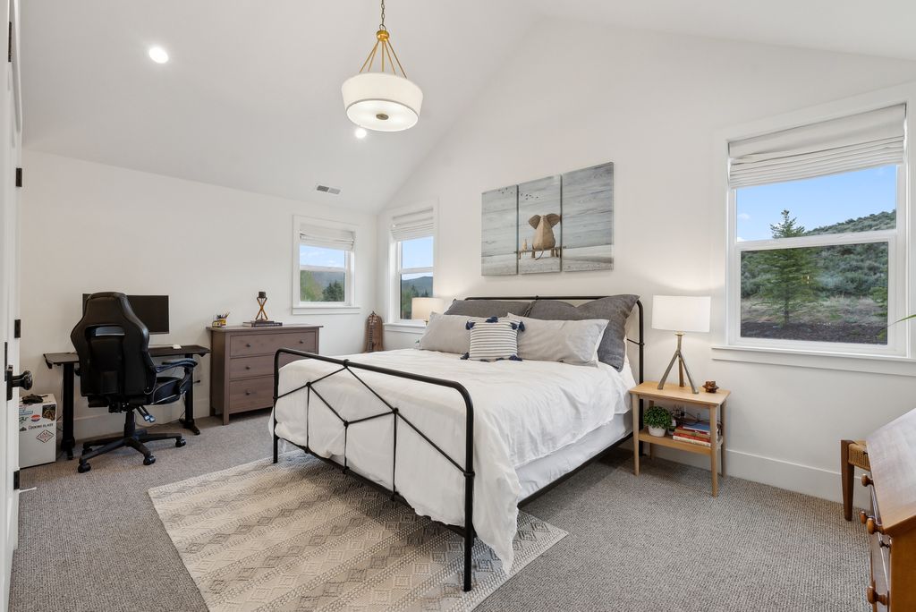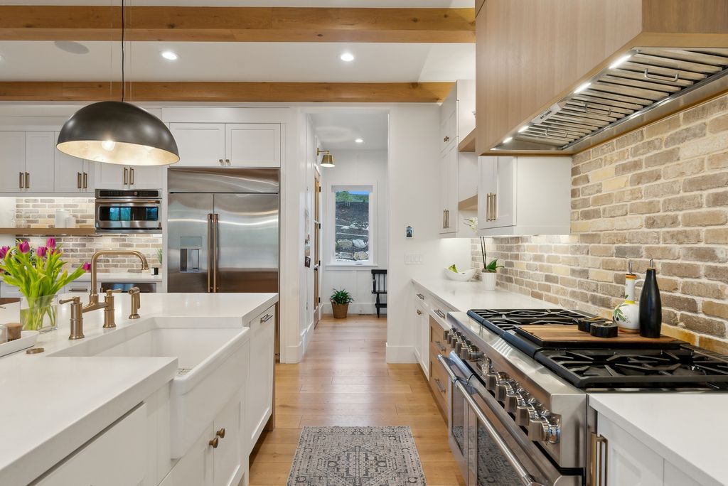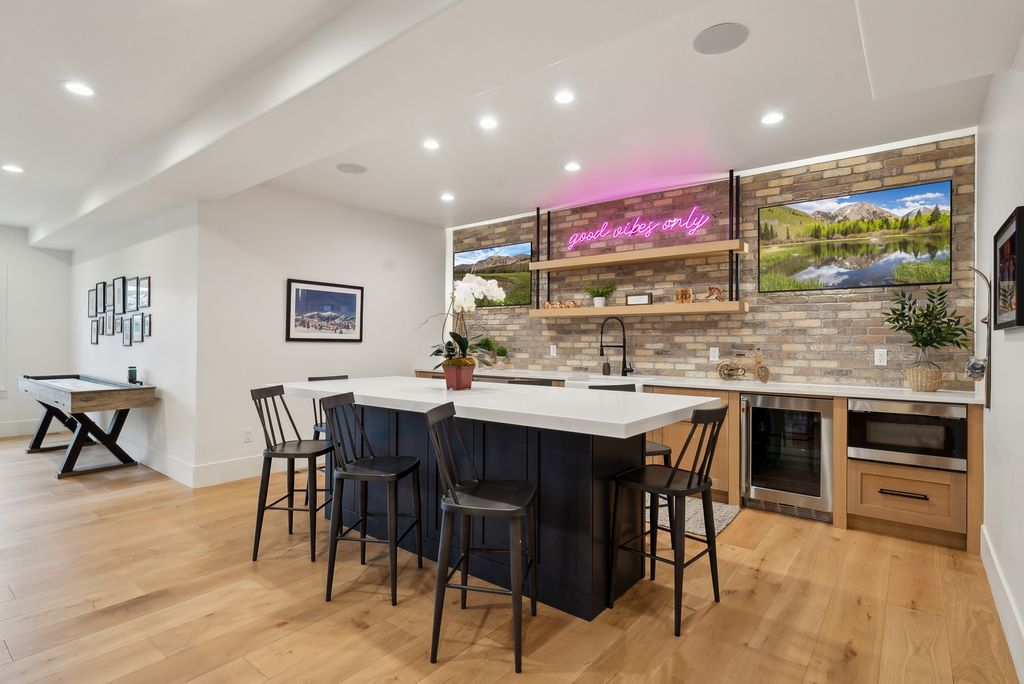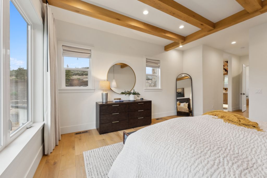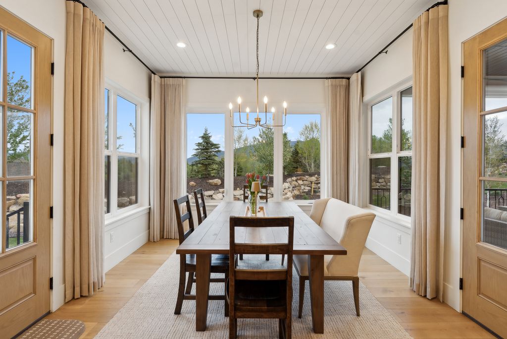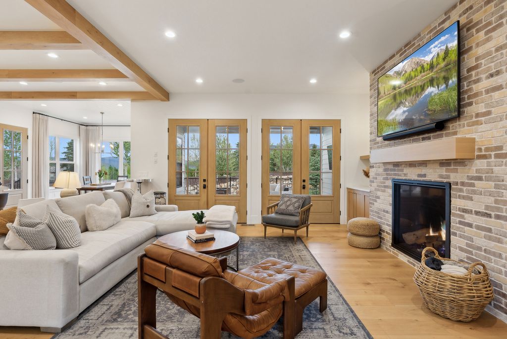 This perfectly designed home has the most amazing finishes throughout, offers main floor living and has stellar views to the Kamas Valley and Uinta Mountains. It’s a modern farmhouse with warm color palettes of wood, brick and rock, creating the inviting home that bridges contemporary with a farm house vibe. The main floor offers an inviting great room with a chef’s kitchen all opening to an amazing patio area perfect for outdoor movie watching and morning coffee. The primary bedroom is also on the main level offering beautiful valley views, a stunning bathroom with a soaker tub and oversized shower plus a large walk-in closet. Upstairs you’ll find two private guest rooms and an office offering some of the best views in the home. The downstairs walk-out family room is perfect for an additional living space that features a wet bar, room for a pool table, versatile theatre room, a brick wine room and plenty of space to entertain or snuggle in at home. You can walk out to the private back yard that features a hot tub area and designer shed. There’s also two additional large bedrooms on this level. The home boasts multiple porches, decks and private patios perfect for enjoying the summer evenings. The home has unbelievable landscaping design emphasizing the valley views from almost every window. You’ll enjoy being tucked in the Kamas Valley, and yet just 15 minutes to downtown Park City and the slopes.