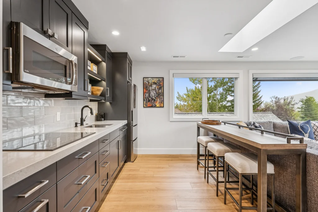 This incredible Sun Peak home located in the Willow Draw Cottages was completely rebuilt with timeless contemporary finishes and is unlike anything you've ever seen. It sits on a unique lot with the most beautiful, private backyard opening to the wooded trees with views to the back of the Utah Olympic Park with multiple seating areas and a hot tub. The great room offers two living areas both opening to the large designer kitchen while never noticing your neighbors due to the way the home is situated on the lot. There's a main floor primary suite that has been expanded making it the perfect size with a beautifully designed bathroom and walk-in closet. You'll also find another bedroom on the main floor, a spacious mud room and an impressive entrance to the home. Upstairs is a large second living area with a second full size kitchen with large windows opening to views of Deer Valley Resort and two bedrooms each with private bathrooms. The finishes and style of this home are spot-on in a timeless modern style that is both warm and contemporary. This is the best in-town home on the market in the best location.