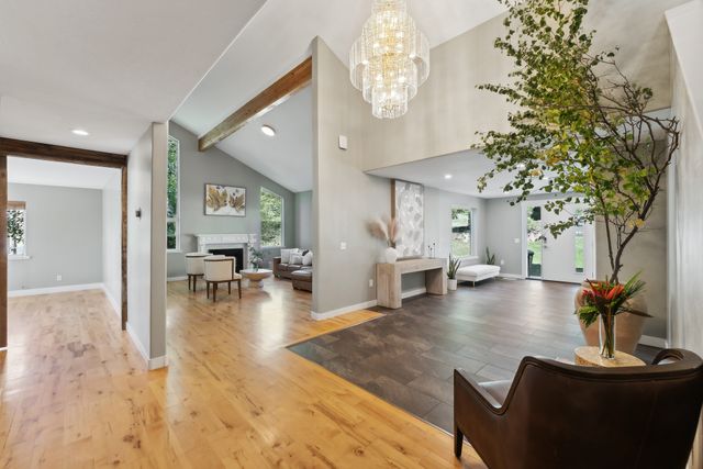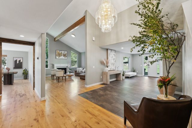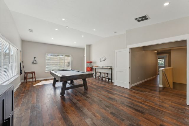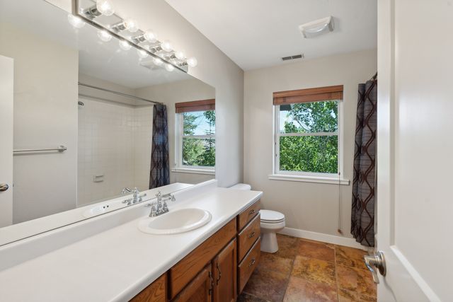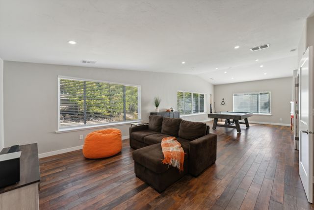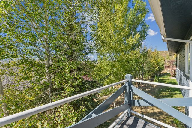Welcome to this beautifully designed two-story home, featuring a spacious and functional floor plan perfect for family living. The main level offers an inviting, oversized living room and a cozy family area just off the kitchen—ideal for gatherings. A versatile flex space can serve as a home office or playroom, complemented by a full bathroom and a convenient laundry room. Upstairs, you'll find four generously sized bedrooms, providing ample space for comfort and privacy. The upper level also boasts a 726-square-foot game and workout room, ideal for entertainment and fitness enthusiasts alike. The elegant entryway sets the tone for the home, leading to additional features like a walk-in pantry, mudroom, and abundant storage throughout. Step outside to enjoy the expansive deck, complete with a sunshade and hot tub for year-round relaxation, all while taking in breathtaking mountain views. The large yard offers plenty of space for recreation, including a private sports court, and additional parking is available for year-round boat or RV storage. This home combines beauty, practicality, and an unbeatable location in the coveted Park City School District.