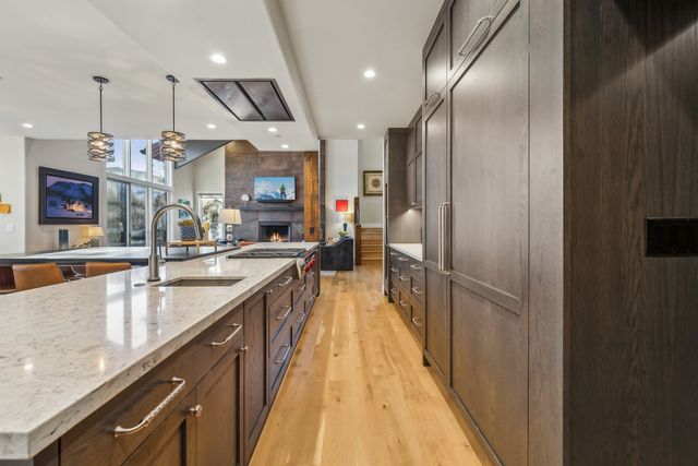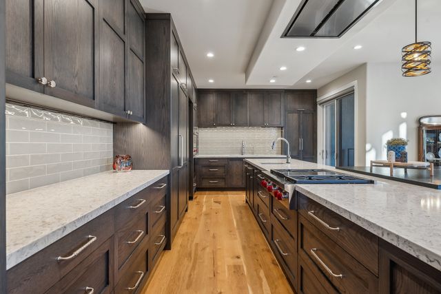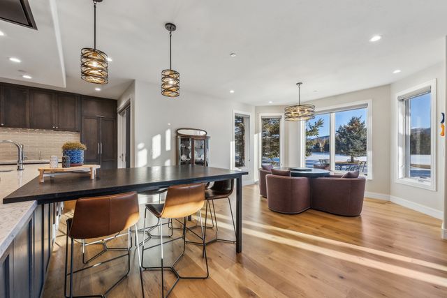 Stunning contemporary townhome with the best ski run views on the 10th hole of the Park Meadows Golf Course. This home was completely renovated down to the studs with thoughtful, beautiful finishes throughout. The home features an expansive living space with vaulted ceilings, large windows taking in the unobstructed views to Deer Valley Resort and Park City Mountain Resort and a floor-to-ceiling wood burning fireplace. The kitchen is beautifully designed with all the top-of-the-line appliances, like a SubZero refrigerator and Wolf ovens, and an incredible pantry space. The patio has also been expanded for perfect outdoor living and enjoying time in the hot tub to take in this unique location on the “front” row of this coveted development of the Cove at Eagle Mountain in popular Park Meadows. The home also has four beautifully designed bedrooms each with their own uniquely designed private bathroom. Additionally the primary suite boasts some of the best views in the property plus a fireplace, wet bar, steam shower and a perfectly designed closet. There’s so much to love about this property including a separate office, newly added attic with flooring, a bike wash, robust insulation, exterior drains and all the care taken to create the perfect mountain residence. The location is the best in Park City with easy access to hundreds of hiking and biking trails, a quick bike ride to Main Street and entry to Round Valley open space across the street. This is a brilliant property and once-in-a-lifetime opportunity.