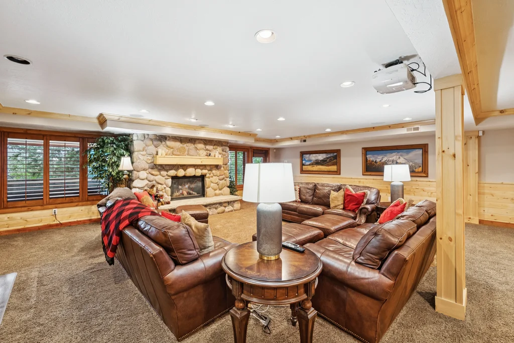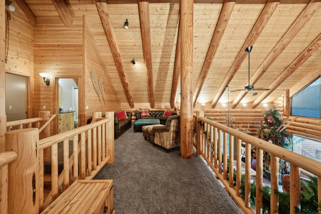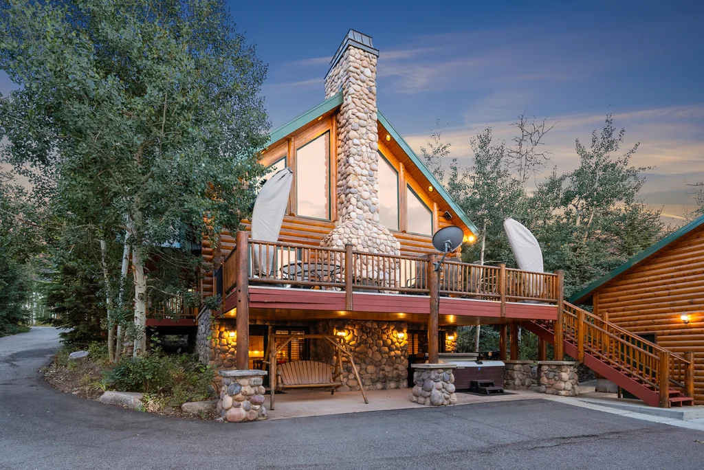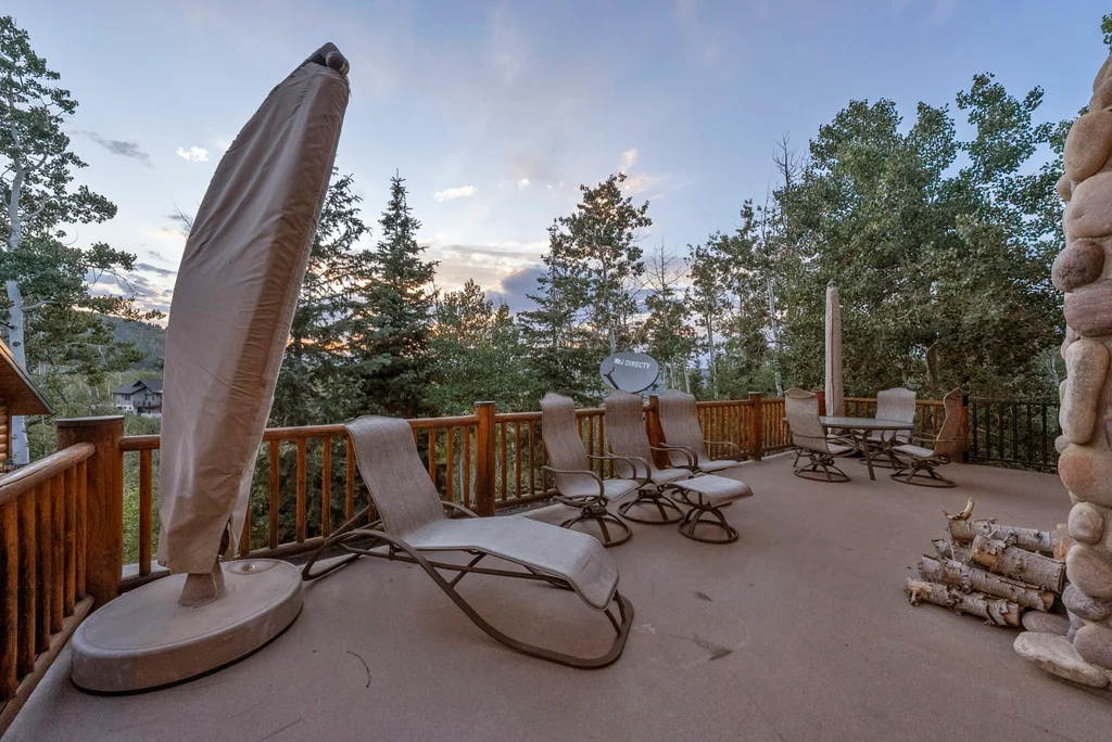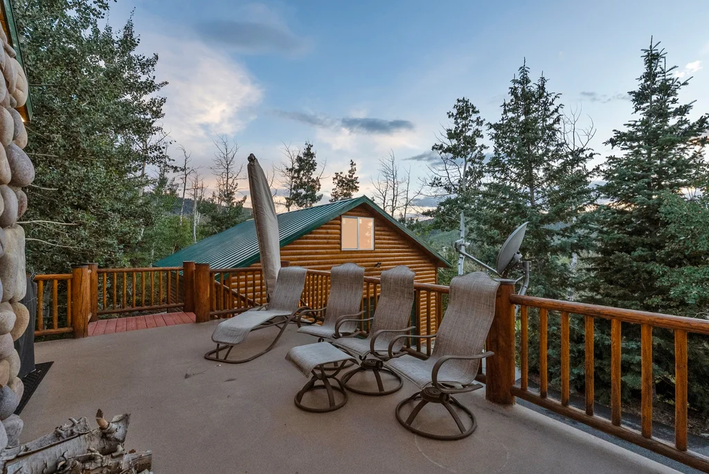 This turn-key, lodge-style custom log cabin is one of the few within Timber Lakes Estates, a private, guard-gated, res/rec community 7 miles east of Heber, that offers all the qualities that most desire: views, towering Aspen and Pine trees, national forest access, an entertainer's home design that caters well to large gatherings, and a 1-hour proximity to SLC or Provo. Being sold fully furnished and decorated, ready for immediate use. Two bedrooms on the main level 2 bedrooms upstairs with open loft. Full ground level family room with projector screen, wet bar, pool table and access to the Bullfrog Spa outdoors. 30' x 35' 2 car garage with plywood and electrical finished space above the garage for storage. Large covered deck with outdoor fireplace and Wasatch Back views. Perfect for an executive or large family retreat. 12 minutes to Heber, 30 min to Park City. Enjoy golf, fishing, boating, skiing, hunting, ATV-ing, and all the amenities of the Heber Valley & Park City at your fingertips! ** Adjacent smaller cabin of the same quality finishes on 1 acre being sold as well and a separate vacant 1-acre lot #550 also available separately. Please inquire for additional details on those offerings.