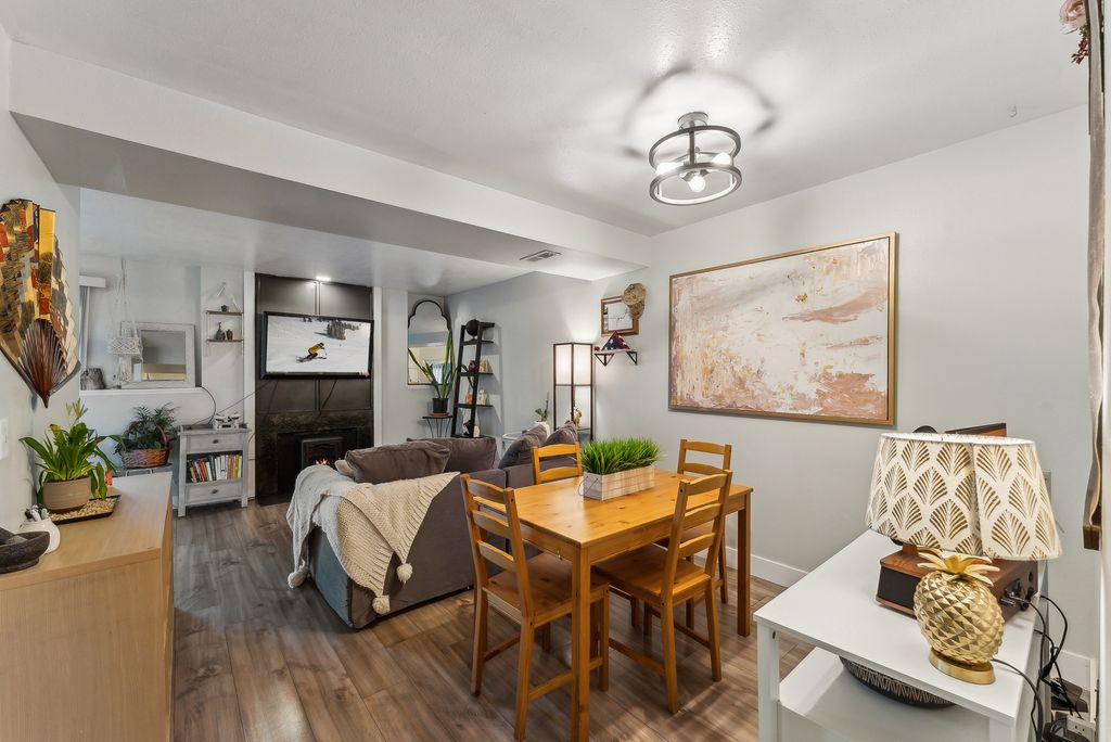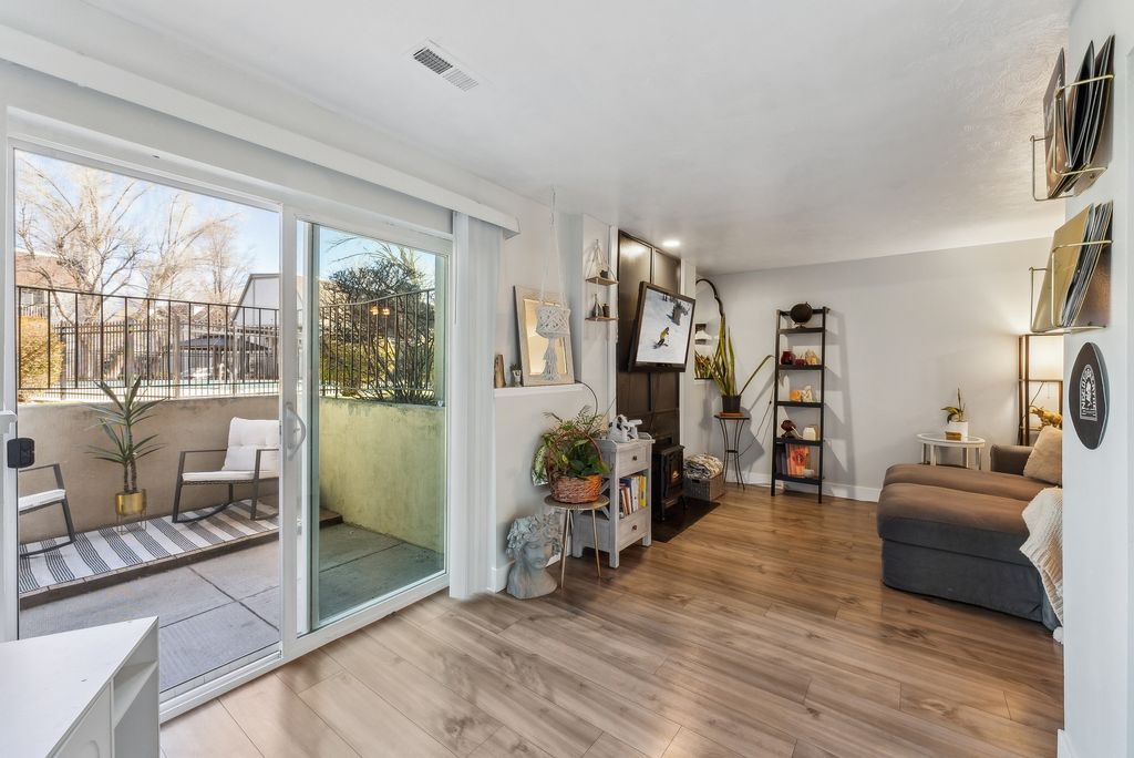 Freshly updated and move-in ready, this refreshed home features a seamless layout with a spacious private patio and full-size washer/ dryer in-unit, all just steps away from a fantastic community pool, creek and clubhouse! Notable features include new LVP flooring, ample closet space, freshly painted walls, updated kitchen cabinets, and modern lighting fixtures. Very affordable HOA covers gas, sewer, trash, snow removal, grounds & exterior maintenance, building insurance and amenities. Located in a prime East Side location, just a short walk to Murray Park, it offers easy access to schools, shopping, medical centers, and major freeways, making it a highly desirable place to call home!